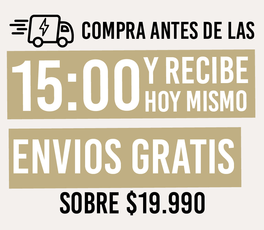 Si realizas tu compra antes de las 17:00 hrs, en santiago te llega el mismo dia y a regiones en un plazo normal de 24 a 72 horas