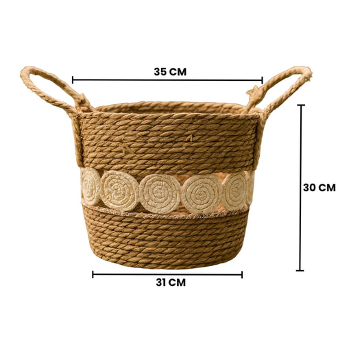Canasto Cesta Yute Diseño Circulos Tejido Estilo Rustico XL