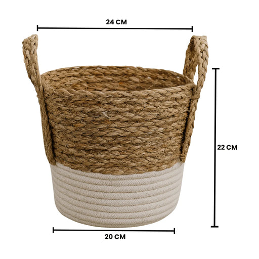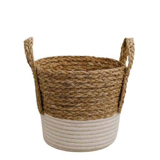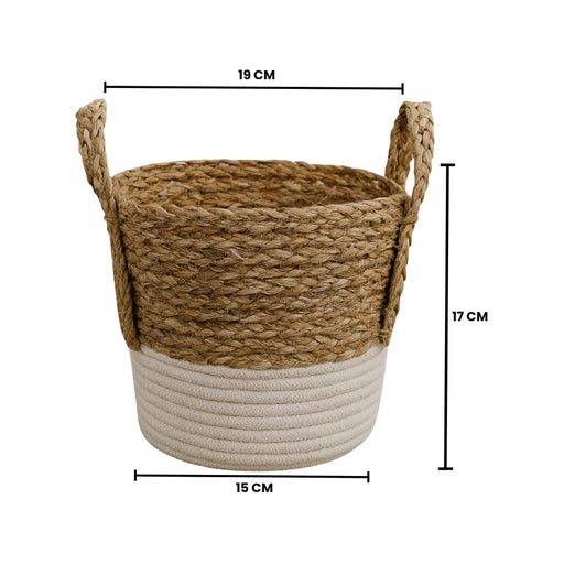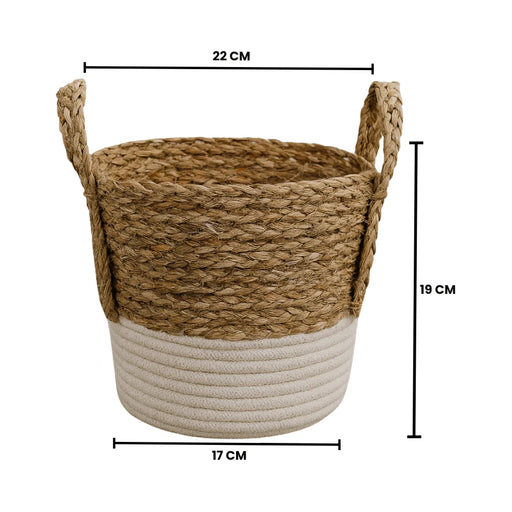 Organiza con estilo natural usando este canasto pequeño.El tejido de yute y algodón es rústico y funcional.Perfecto para objetos pequeños o decorac...
