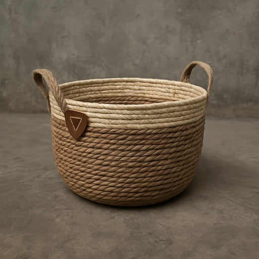 Cestos de yute/algodón: tono natural, flexibles y ligeros; perfectos para mantas, juguetes y cubre-macetero.