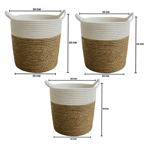 Ver todos los detallesSet 3 Canastos Cesta Yute Algodón Tejido Estilo Rustico Asas