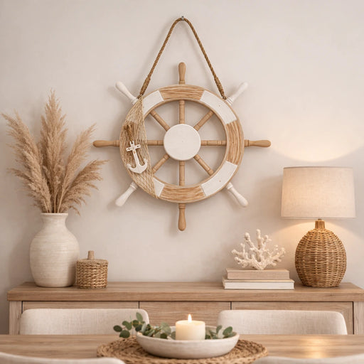 Añade un toque náutico y elegante a tu hogar con este Timón de Barco Decorativo de Madera. Perfecto para darle un aire fresco y marinero a cualquie...
