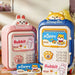 Su diseño incluye detalles kawaii en distintos colores como amarillo, azul, rosado y morado.