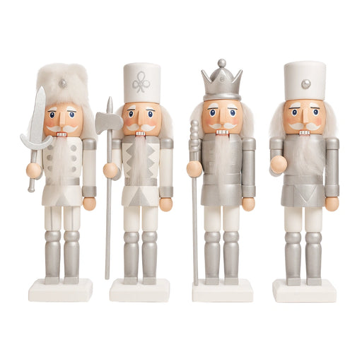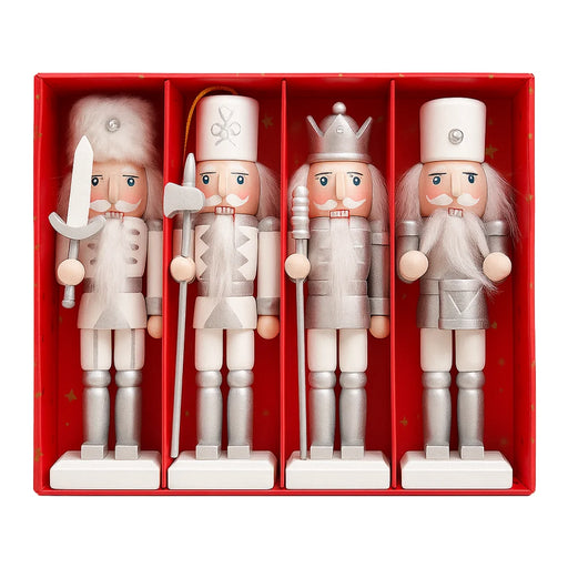 Set de 4 cascanueces de madera de 13 cm, un clásico adorno navideño lleno de encanto y tradición. Cada figura está cuidadosamente pintada con detal...