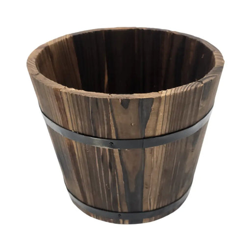 Embellece tus exteriores con este macetero mediano de madera.El diseño tipo barril es resistente y decorativo.Perfecto para plantas medianas en jar...